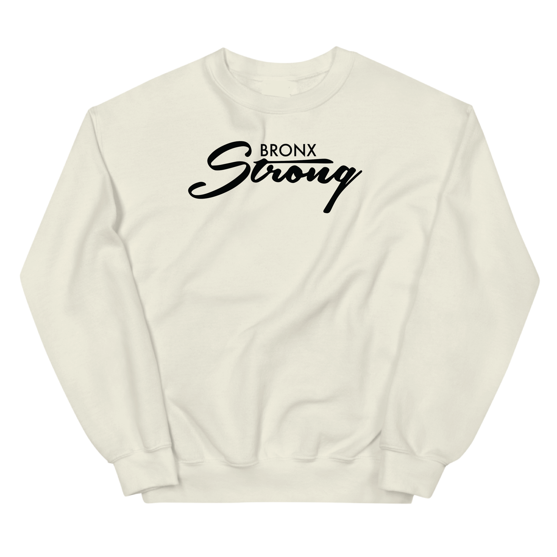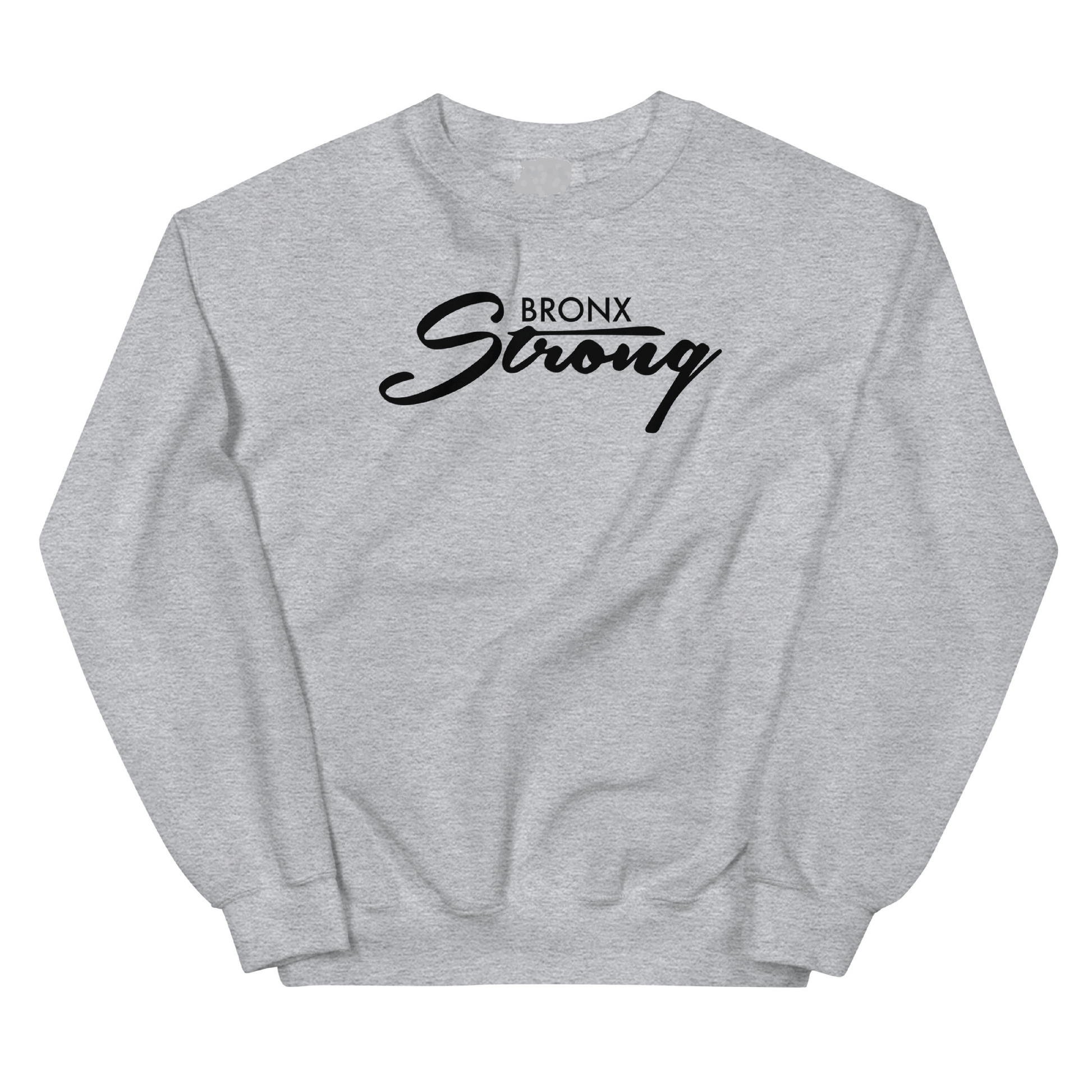 Bronx Strong. A description of character, a motto, a lifestyle. There's nothing stronger. A sturdy and warm sweatshirt bound to keep you warm in the colder months. A pre-shrunk, classic fit sweater that's made with air-jet spun yarn for a soft feel.